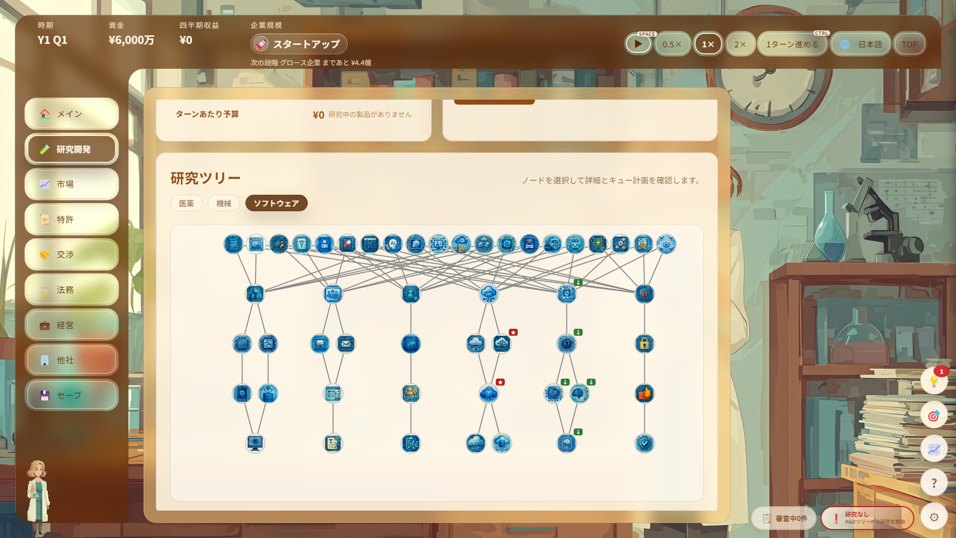 『Patent Tycoon』は、特許・研究開発・経営戦略を軸とした経営シミュレーションゲームです。